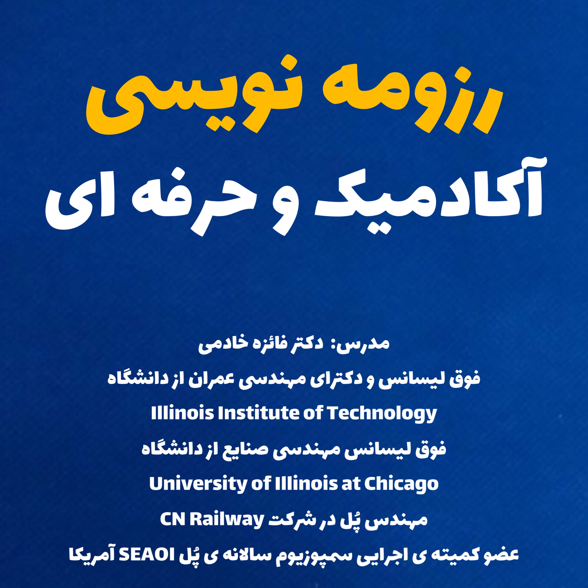 دوره رزومه نویسی برای من بسیار مفید بود، خانم دکتر خادمی با جزئیات بسیار دقیق و کامل توضیح دادند و همچنین به تک تک سؤالات دانشجویان در جلسه به صورت کامل و دقیق پاسخ دادند. این کارگاه بسیار مؤثر هست برای موقعیت های تحصیلی و کاری داخل و خارج، چون دوره جامعی هست و ضمن اینکه زمانی که با آگاهی از جزئیات و نکاتی که ایشون تدریس کردند، رزومه حرفه ای می توان نوشت که به شدت میتونه در دیدگاه اساتید یا افرادی که رزومه را برای آنها ارسال میکنیم تأثیرگذار باشه.